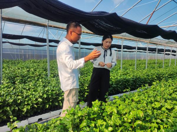 先锋队先后到广西诚众东云农业有限公司、新圩镇河村番石榴种植基地以及北流市龙鼎生态农业有限公司,为基地负责人讲解相关栽培技术,在百香果育苗大棚,先锋队详细讲解嫁接的最佳时机、操作方法以及注意事项,通过嫁接技术,可以有效提高百香果的品质和产量,增强植株的抗病虫害能力;在番石榴种植基地,先锋队针对采后修剪技术进行现场示范,合理的采后修剪能够促进番石榴树的新梢生长,保持树形美观,为下一季的丰收打下坚实基础。在蔬菜种植基地,先锋队从选种、播种、育苗管理等环节进行了全面指导,帮助工人掌握科学的育苗方法,提高菜心的出苗率和生长质量。