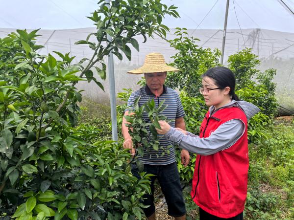 科技人员对初植密度110株/亩的加装“防虫网”沃柑进行线路踏查,科学开展柑橘木虱及柑橘黄龙病发生情况调查,针对柑橘黄龙病发生等问题,科技人员提出全程采用质量安全控制及病虫害绿色防控技术,使柑橘木虱虫口密度控制在1%以下、黄龙病株控制在0.5%以下,并减少农药使用等建议,使柑橘达到绿色生产标准。通过此次技术服务,科技人员不仅为种植户提供了专业的技术指导,还帮助他们树立了绿色生产的理念,为推动当地柑橘产业的绿色发展奠定了坚实基础。
