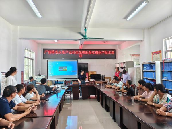 2025年7月29日,广西热作所特色水果产业科技先锋队成员、科技特派员范競升赴马山县周鹿镇南邦村开展番石榴生产技术培训。马山县周鹿镇南邦村党支部书记、村干部及果蔬种植户30多名人员参加此次培训。