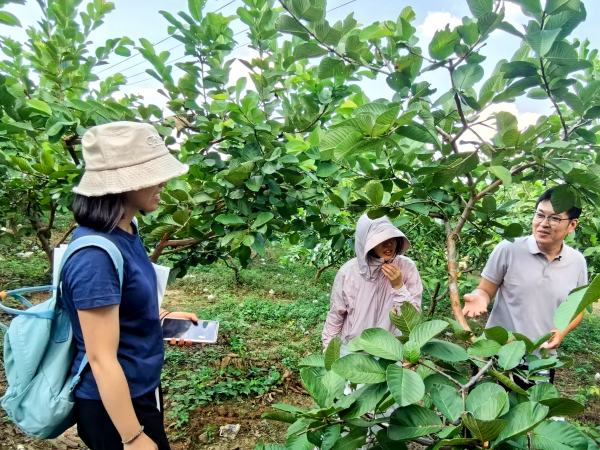 在实地调研环节,特色水果研究团队成员围绕番石榴产业发展关键技术需求,介绍了热作所创制的番石榴杂交授粉新技术体系,展示了选育优良杂交单株的阶段性研究成果。陈军一行共享了1份自育品种保存在农业农村部南宁番石榴种质资源圃中,双方就加强番石榴种质资源共享与高效利用、产学研协同创新机制构建、科技成果转化落地途径等方面进行了深入探讨,并达成了合作意向。