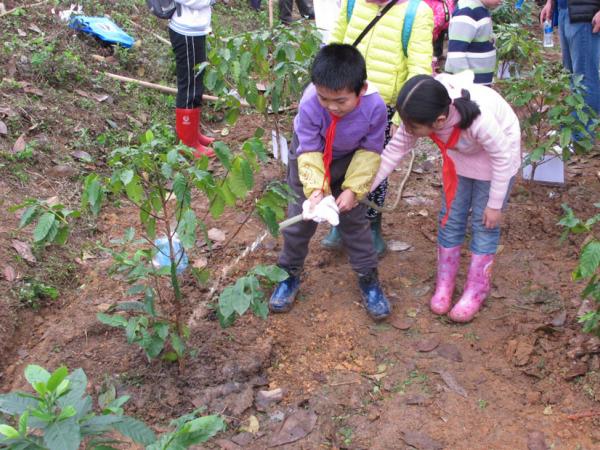 2014年3月15日,南宁市衡阳路小学二年级(1)班50多位小学生由家长、老师陪同,到科普园进行“我与小树共成长”亲子植树活动。学生、家长们经过技术人员的指导,种下100多株咖啡树,挂上了认养牌,并将他们的咖啡园命名为“太阳花乐园”。
