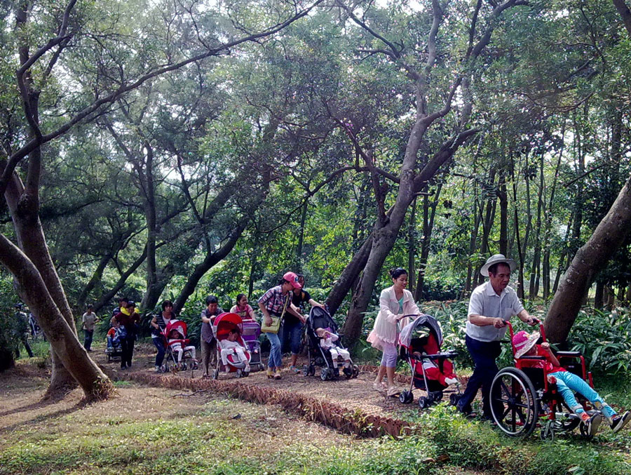 2014年9月26日,为广泛动员社会各阶层群众关注脑瘫儿童特殊群体状况,广西云彩社会服务中心组织老师、志愿者、家长及患儿到亚热带植物科普园开展亲子活动,他们在科普园茂盛的果林下散步、游览,感受树叶间洒下阳光的温暖,还进行野炊、窑红薯、康复交流等活动,营造了良好的关爱帮扶氛围。