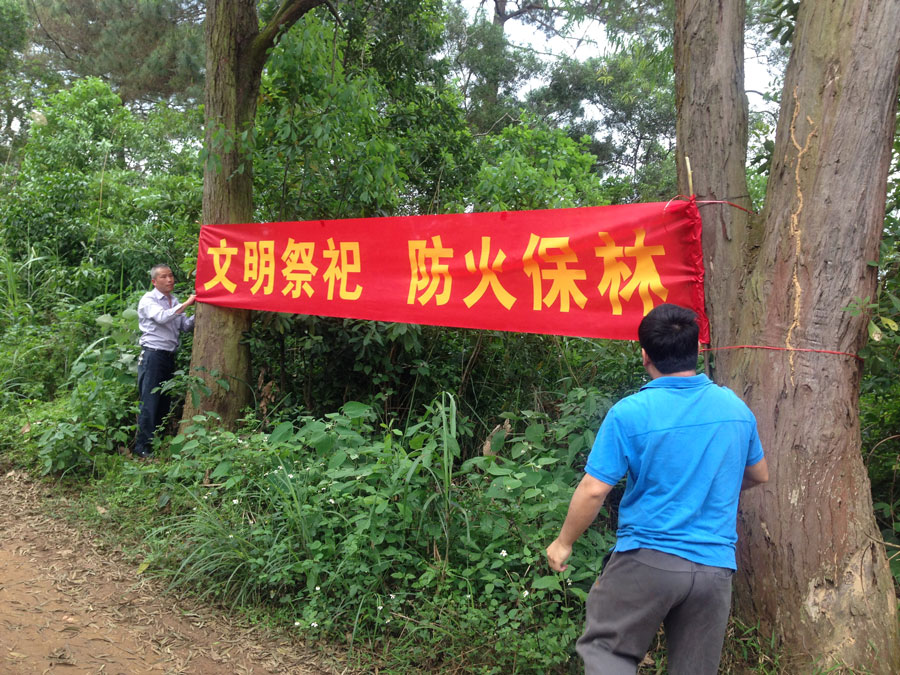 热作所安全办于3月30日在所部原3队泥狗岭一带易发生火灾隐患处张挂两幅清明节防火标语,警示群众文明祭祀,同时在清明节期间加派人手巡逻,保卫群众生命财产安全。