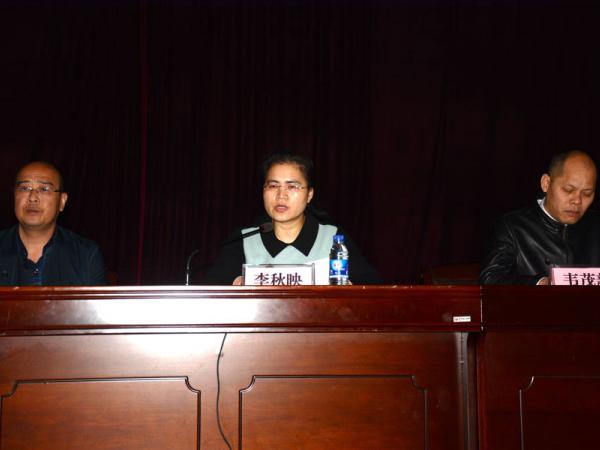 广西壮族自治区农垦局人教处副处长李秋映同志宣读2014年度领导班子及领导干部个人考核结果,并组织职工代表对2015年所领导班子及领导干部个人进行民主测评。