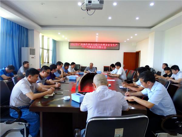 2017年5月5日,广西热作所召开2017年综合治理和安全生产会议,热作所所长、党委书记黄强,副所长、纪委书记池昭锦,以及安全办、保卫科等相关部门负责人参加会议。会议根据自治区综治委,自治区安监局和自治区农垦局下发的文件精神,安排部署了热作所今年社会管理综合治理和安全生产各项工作。