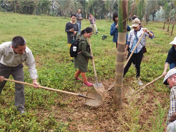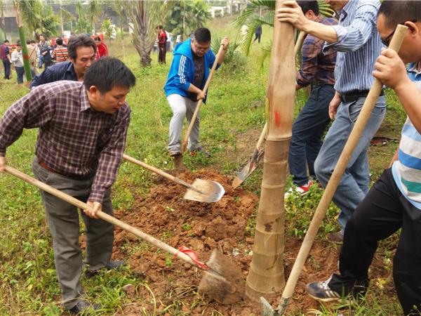 广西亚热带植物科普园作为南宁市青少年科普教育基地、南宁市绿色环境教育基地、区直机关青年活动基地以及广西科普教育基地,是区内一家集植物观光、科普教育、学术交流为一体的科普园区。在植树现场,干部职工们自发分工协作,运送树苗、挥锹铲土,呈现一片紧张有序,热情高涨的劳动景象。大家配合默契,干劲十足,短短一小时内即栽种大王椰苗八十余株,为科普园增添了一片新绿。