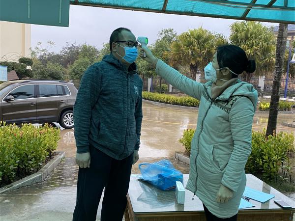 2020年2月3日,在节后上班第一天,广西热作所黄强所长到职工饭堂、门岗体温监测处、热作所生活区物业办公室等地检查指导工作,并要求各部门提高站位、压实责任,抓好联防联控。为切实做好新冠病毒感染的肺炎疫情防控工作,广西热作所采取多项举措,认真组织开展返岗防疫保障工作。一是通过层层传导,强化广大干部职工的疫情防控意识。二是提前对计划返岗人员的相关信息进行详细排查。三是在职工返岗前对办公区域进行全面消毒。四是在办公区域出入口设立监测防控点,对往来人员进行体温检测排查,并给未佩戴口罩的职工发放医用口罩。此外,广西热作所严格按照《自治区党委办公厅、政府办公厅发布通知延迟广西区内企业复工学校开学》要求,在2020年2月3日至9日期间实行弹性工作制,错峰上下班,减少会议和人员聚集,全面防控新型冠状病毒。