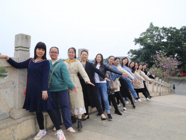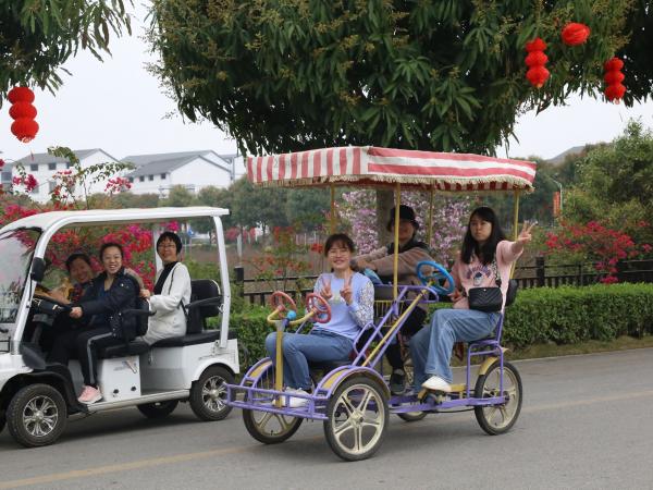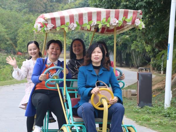 女职工们在美丽南方游览青瓦白墙民居,小桥流水、亭台池塘,观赏艳丽的三角梅、羊蹄甲、菊花,领略生机盎然的田园风光。三五成群或拍照留影,或驻足观赏,或私语交流、或欢乐骑行,畅游春意盎然的美丽农庄。