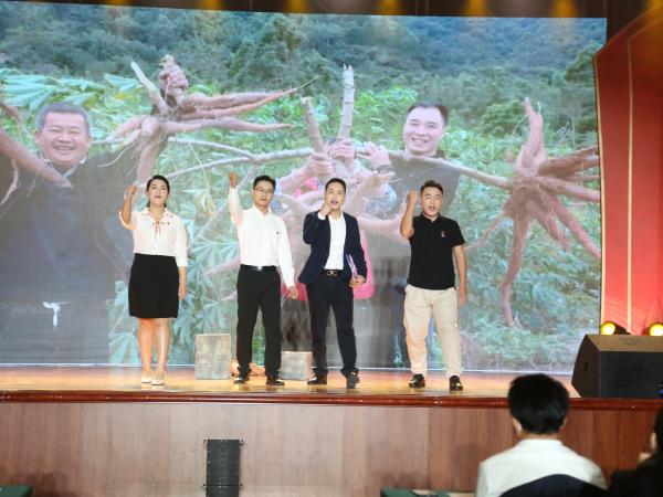 小品《乡村振兴“薯”你最棒》讲述了广西农科院热作所派驻兴业县卖酒镇卖酒村的第一书记黄寿辉同志关心村里大小事务,帮助农户申请产业种植补贴,发展特色产业带领村民脱贫致富的故事。通过参赛代表的精彩演绎,切实感受到了驻村书记关心村民疾苦,农村群众共同追梦筑梦圆梦,为实现共同富裕不断努力奋斗的精神。