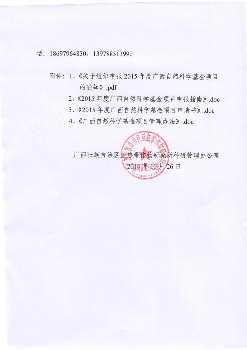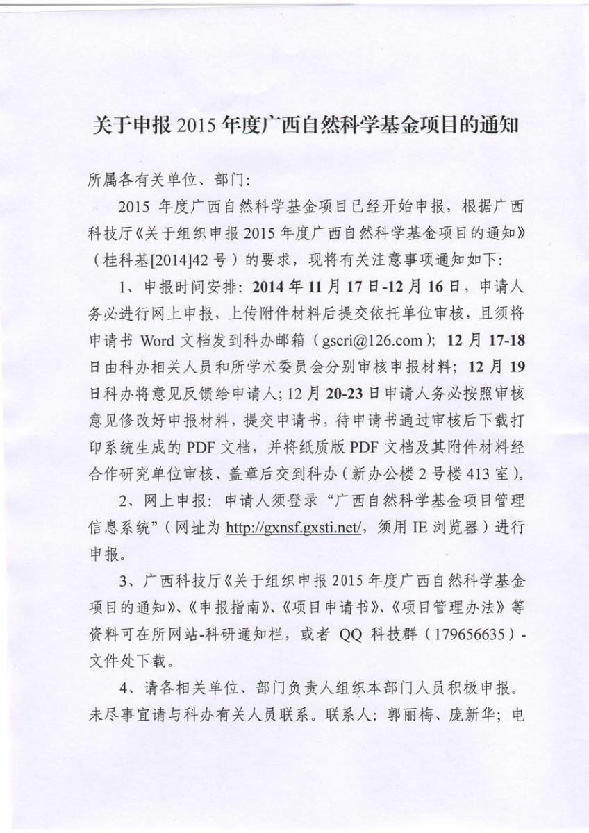科研办关于申报2015年度广西自然科学基金项目的通知