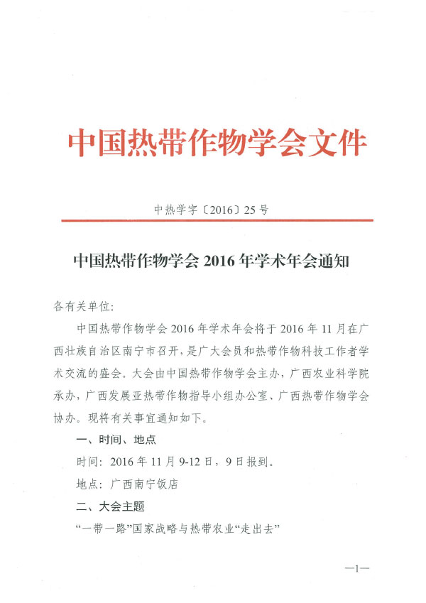 中热学字2016-25号中国热带作物学会2016年学术年会正式通知