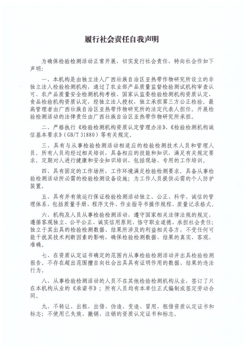 履行社会责任自我声明