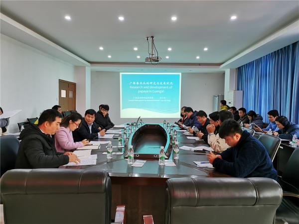 2019年12月12日,由广西农业科学院举办的热带亚热带水果适用技术培训班的东盟学员到广西热作所交流学习,交流内容主要是番木瓜在广西的发展现状。13名东盟学员来自越南、柬埔寨、缅甸、老挝等国,广西热作所副所长李军及15名青年科技人员陪同交流学习。