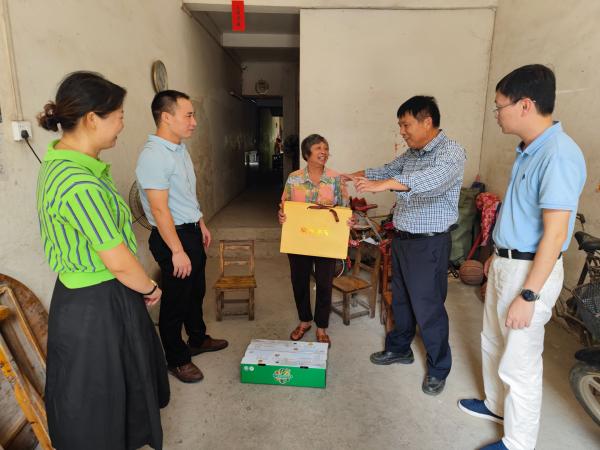 在驻村第一书记黄寿辉、村党总支书记兼村委会主任梁梨等陪同下,池昭锦一行来到该村脱贫不稳定户家中,并为他们送去月饼、水果等慰问品,送去浓浓的节日祝福与热作所的关怀。