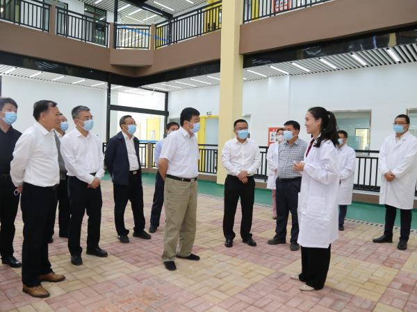 在科研新区二期新建实验大楼,依托广西热作所建设的农业农村部亚热带果品蔬菜质量监督检验测试中心、农业部农产品质量安全风险评估实验室(南宁)、农业农村部亚热带果品蔬菜质量安全控制重点实验室三个部级平台相关负责同志介绍了实验室研究团队、建筑功能分区等基本情况,韦绍龙对实验室开展的农产品质量安全检测、监督、风险评估工作内容作了汇报。方春明对广西热作所在农产品质量安全科研、部级重点实验室建设方面取得的显著成效表示肯定,并建议广西农业科学院在人员待遇、政策制度等方面全力支持广西热作所高质量发展。