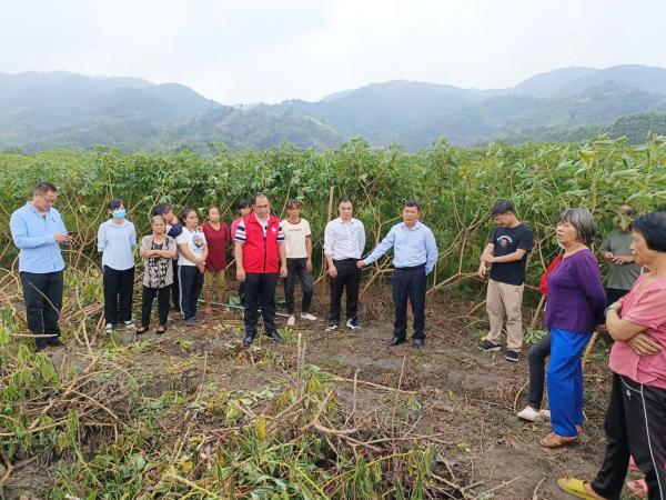 2022年11月29日,广西热作所副所长李军和团队成员郑华正高级农艺师到兴业县卖酒镇卖酒村和山心镇龙江村开展木薯收获和种茎贮藏技术指导工作,广西农业科学院乡村振兴办主任黄学华、卖酒村驻村第一书记黄寿辉、村支书梁梨等陪同。