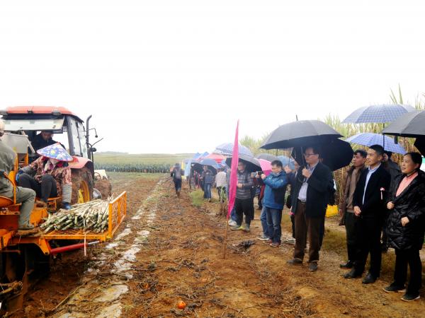 期间,庞新华一行参观了集开行、施肥、切种、排种、覆膜、培土等工序一体化的甘蔗机械化种植演示。