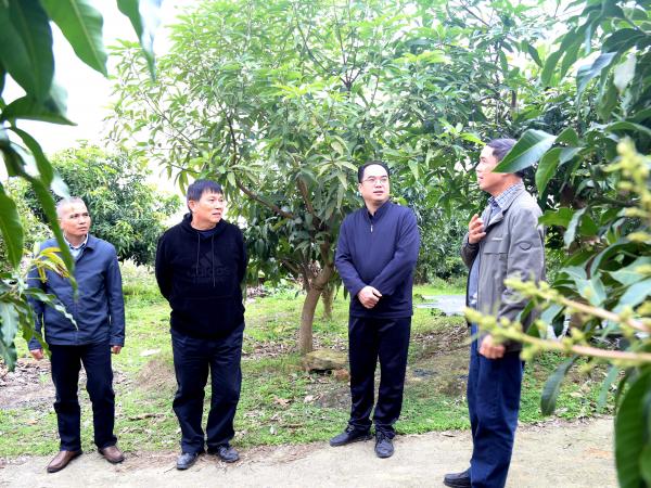 2023年2月24日,自治区发展改革委农经处二级调研员王国祥到广西热作所指导科研发展规划工作,广西热作所党委书记池昭锦,副所长、国家木薯产业技术体系岗位科学家李军,芒果研究中心主任、现代农业产业技术体系广西芒果创新团队首席专家黄国弟,科研管理办公室、所办公室负责人陪同。