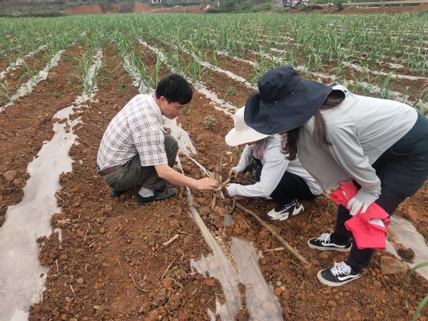 今年年初,广西热作所甘蔗研究团队在百色市布点建设了多个甘蔗桂热2号示范基地,其中包括平果市太平镇矿山复垦基地,据了解,矿山复垦基地回填了贫瘠的自然土,而广西热作所甘蔗研究团队自主选育的甘蔗桂热2号新品种具有耐贫瘠、耐干旱等特点,因此,甘蔗研究团队赠送了15吨桂热2号甘蔗蔗种到矿山复垦基地种植,拟为实现生态保护与农民增收提供技术支持。通过现场开展甘蔗桂热2号新品种种植情况调查发现,今年由于干旱导致很多基地甘蔗出苗率偏低,但该品种整体的出苗情况良好,只有犁耙车转弯处地块由于土团较大进而影响到甘蔗出苗,庞新华建议,此部分地块应及时进行补苗。