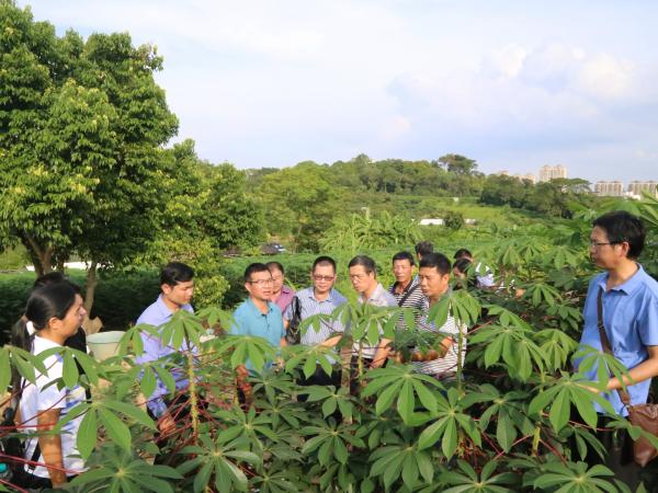 会后,农林部副司长Somhak Vong Vixay一行到木薯种质资源圃查看木薯桂热11号、13号等品种生长情况。