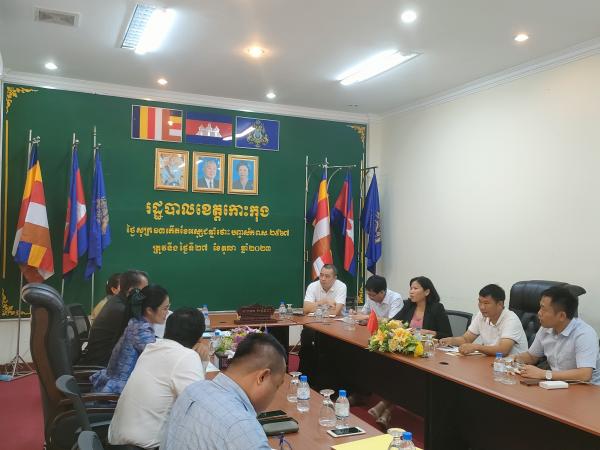 李军一行首先来到柬埔寨戈公省政府,与省长Mithona Phouthorng等政府官员开展座谈磋商,了解该省的产业现状,并探讨在该省发展木薯产业的可行性。省长Mithona Phouthorng介绍了戈公省的气候、土地、交通物流和产业等情况,欢迎中国企业到该省投资建厂和发展木薯种植,并承诺在土地划拨、气象水文数据等方面提供帮助。李军感谢戈公省政府的支持,表示将努力推动中柬木薯投资项目的合作。