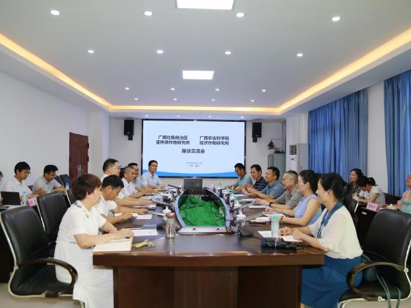 5月27日,广西农业科学院经济作物研究所所长严华兵一行9人到广西热作所开展合作交流活动,广西热作所党委副书记、所长陈赶林,党委副书记梁声侃,副所长李军、覃剑峰、冯春梅参加座谈交流。