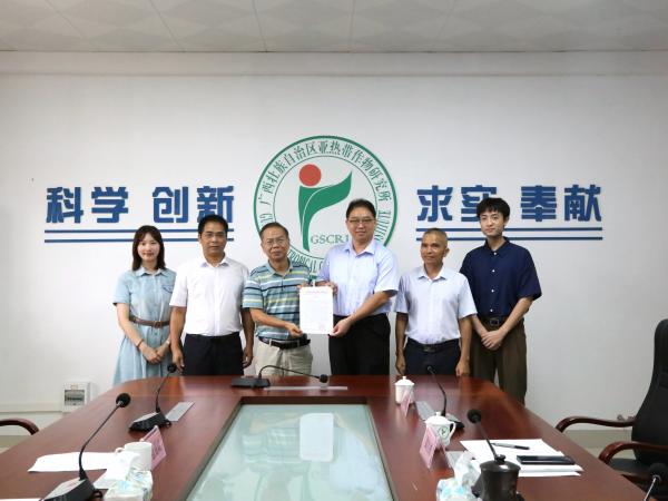 为感谢广西热作所对第二十六届中国科协年会广西壮族自治区党政领导与院士专家座谈会的大力支持,2024年8月23日,广西壮族自治区科学技术协会组织宣传部副部长韦克广一行3人到广西热作所赠送感谢信及开展交流活动,广西热作所党委副书记、所长陈赶林,党委副书记梁声侃,副所长覃剑峰陪同交流。