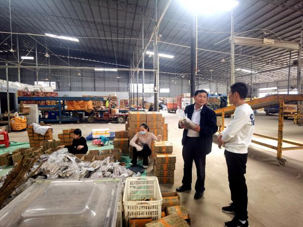 李军一行到防城港市三条八农业科技有限公司,了解该公司食用木薯种植及销售情况,对进一步改进木薯羹加工工艺,如何保持木薯新鲜、软糯口感提出建议。