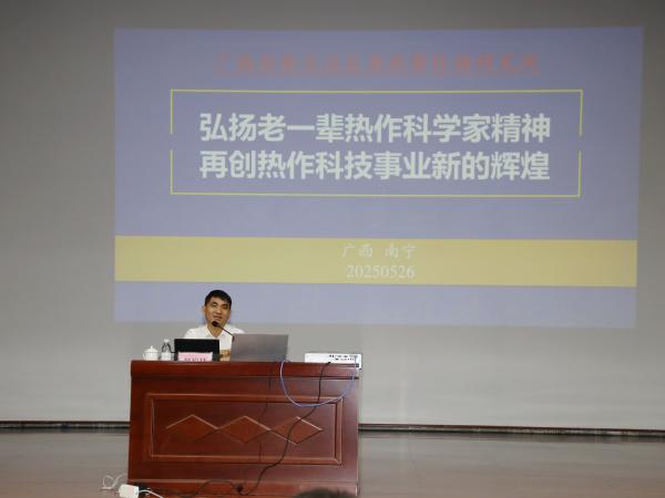 2025年5月26日,由自治区科协主办,广西热作所承办的“科创有我 桂在同行”科学家精神宣讲活动在广西亚热带作物研究所举办。中国热带作物学会常务副理事长兼秘书长、热区乡村振兴研究创新团队首席科学家赵松林研究员受邀作“弘扬老一辈热作科学家精神 再创热作科技事业新的辉煌”主题宣讲讲座。广西热作所党委副书记、所长陈赶林,副所长覃剑峰、冯春梅出席报告会。