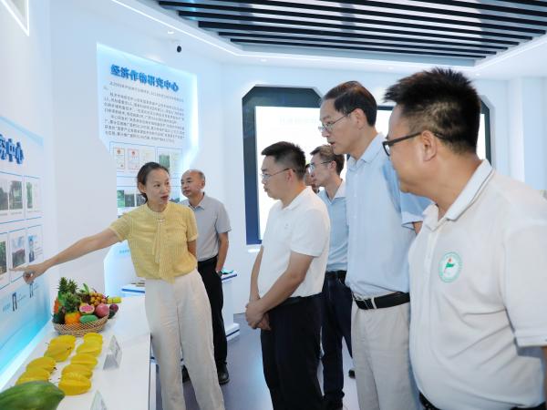 2025年7月9日,江西省农科院院长易龙一行7人到广西热作所参观交流,院党组成员、副院长左明,院办公室副主任陶伟,广西热作所党委委员、副所长覃剑峰陪同交流。