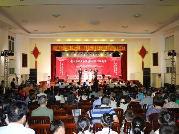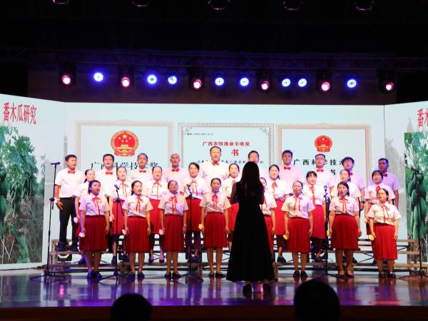 9月29日,广西热作所以“金秋献礼庆华诞,深耕热作绘新篇”为主题,在广西热作所大礼堂举办喜迎广西农科院建院90周年——2025年庆国庆迎中秋文艺晚会。自治区农科院党组副书记、机关党委书记陆宇明等领导莅临指导。广西热作所党委副书记、所长陈赶林,党委副书记、纪委书记梁声侃,党委委员、副所长覃剑峰,党委委员、副所长冯春梅,广西木薯研究所所长李军等所领导出席。中国农业银行股份有限公司南宁民族支行领导、热作所退休领导等嘉宾应邀出席,300余名观众观看演出,共同见证这一喜庆时刻。
