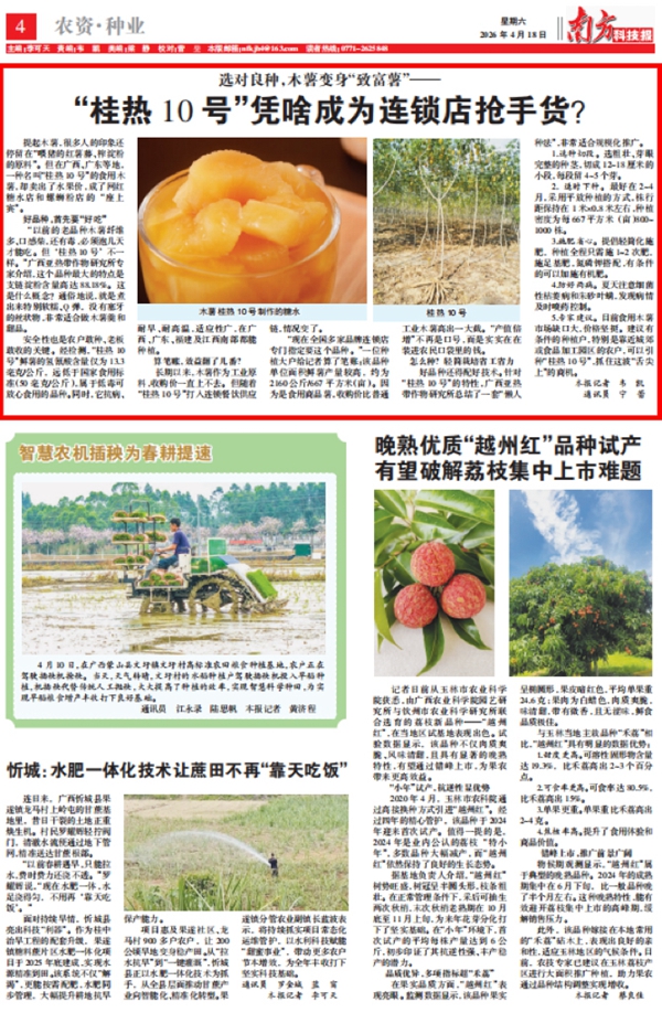 南方科技报:选对良种,木薯变身 “致富薯”——“桂热 10 号” 凭啥成为连锁店抢手货?