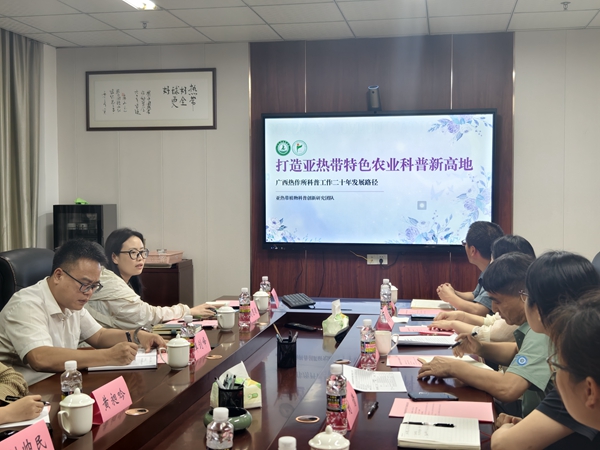 座谈会上,覃剑峰介绍了热作所科研与科普的整体工作情况,团队负责人刘思朝就热作所科普发展、科普园区建设、科普研学等方面进行了详细汇报。中国热带作物学会赵松林秘书长对热作所科普工作给予了肯定,双方围绕2026年全国科技活动周、科普作品创作等内容深入研讨,下一步将整合优势资源,共同助力热带农业科普事业高质量发展。