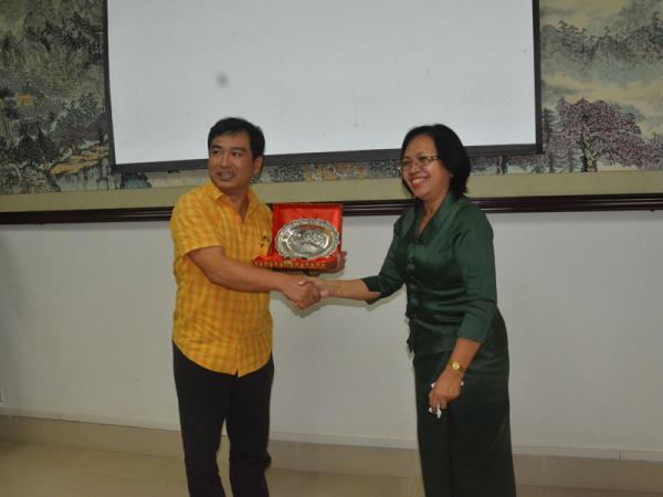 以柬埔寨国务秘书,农业、林业和渔业部国家项目主任Mom Thany 女士为团长的柬埔寨商务考察团一行18人于9月17日上午到访广西木薯研究所,就当前东南亚木薯生产总体情况,市场动向,面临的问题及其解决办法,品种及其栽培技术应用等问题与广西木薯研究所的有关专家进行了探讨与交流。