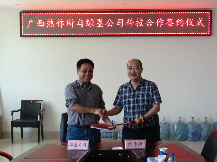 2015年10月20日,广西热作所与广西南宁绿垦现代农业有限责任公司在广西热作所会议室签订科技合作框架协议。广西南宁绿垦现代农业有限责任公司总经理宋福龙,广西热作所所长黄强、副所长池昭锦、广西农垦甘蔗研究所副所长庞新华,以及其他项目相关科技人员参加了此次签约仪式。