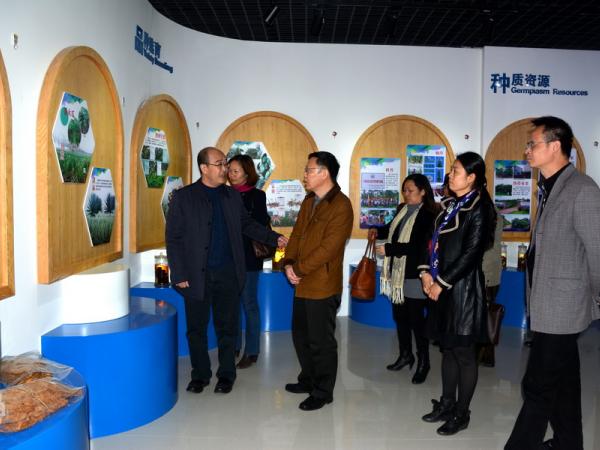 黄强在科研新区二号楼的展厅向李卫东一行介绍了广西热作所在科研项目运转、科研平台建设、种质资源收集、科研成果、技术转让等方面的情况。双方围绕共建科研平台、合作技术研发、成果转化等方面进行了洽谈交流,并就在项目联合申报达成了合作意向。