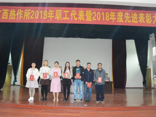 2019年5月9日,广西热作所2019年职工代表暨2018年度先进表彰大会召开。会议总结了2018年的工作成绩,提出了以创建全国一流省级农业研究所为目标,坚持提高科研管理科学化水平,激发科技人员内生动力,加快现代化农业研究体系建设。广西农科院党组副书记、副院长林树恒出席大会并讲话,广西农垦集团人力资源部高级主管黄红珍同志主持所领导班子和所领导干部个人2018年度考核民主测评,广西热作所党委书记、所长黄强作题为《把准发展方向 勇于担当作为 为创建全国一流省级农业研究所而努力奋斗》的工作报告,广西热作所副所长池昭锦主持大会,广西农科院办公室副主任杨景峰、人事处副处长张宗文出席大会。